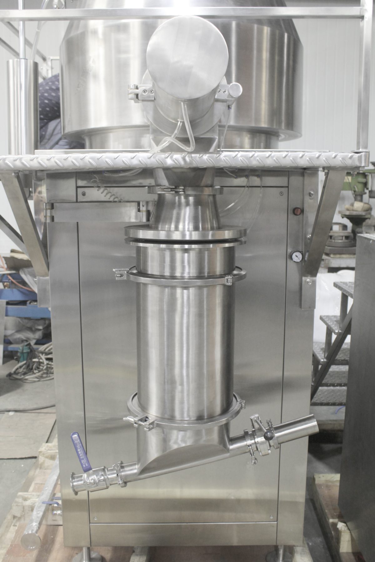 The LMG Series Rapid Mixture Granulator is widely used in pharmaceutical, food, chemical and light industries, etc. to blend powdery materials and granulate. The blending and granulating procedures are completed in the same vessel of the machine. Powdery materials in the stationary conic vessel remain in a semi-flowing and rolling state, owing to the agitation by a blending paddle and are fully mixed.